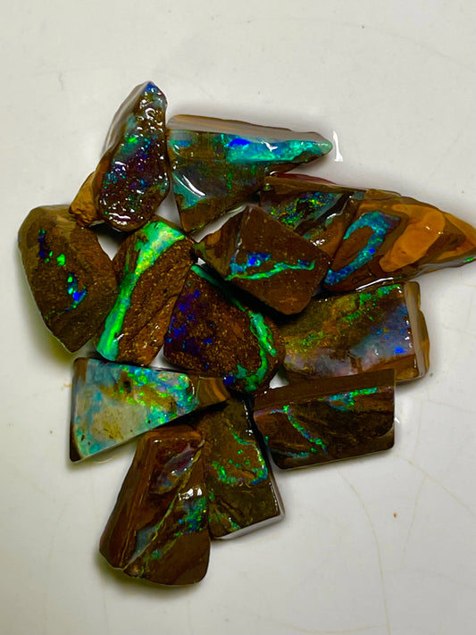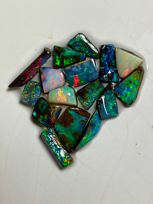 Jewellery Makers rubs/rough parcel 106.75cts Gorgeous Winton boulder opals here Bright Multicolours 14x9x4mm to 13x8x2mm BOUK-001
