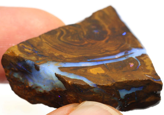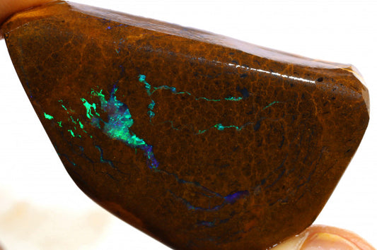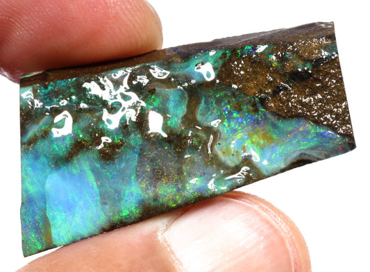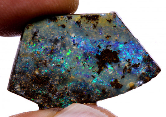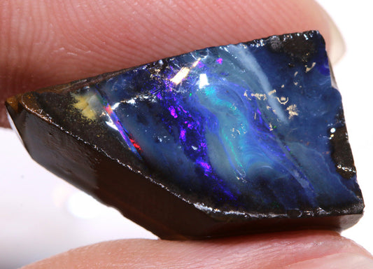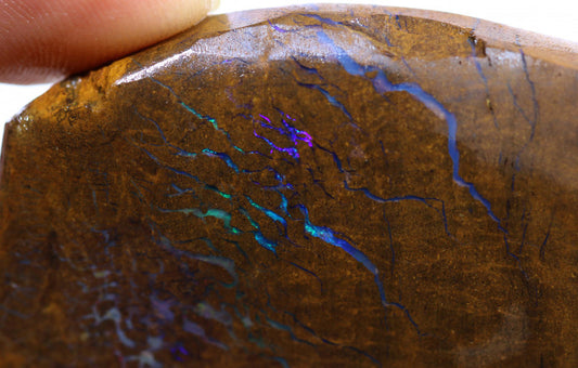 Australian Queensland Boulder Matrix opal 91cts faced rough Koroit veins of Blue fires of mixed tones 40x30x7mm BFA10