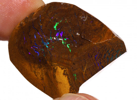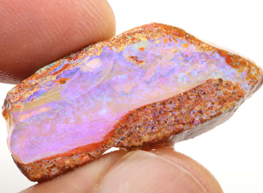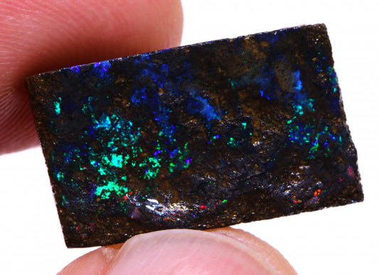 Australian Queensland Boulder Matrix opal 82cts faced/rough Koroit Stunning Exposed veins of Bright Vibrant purple/blue/green fires 27x27x11mm BFA15