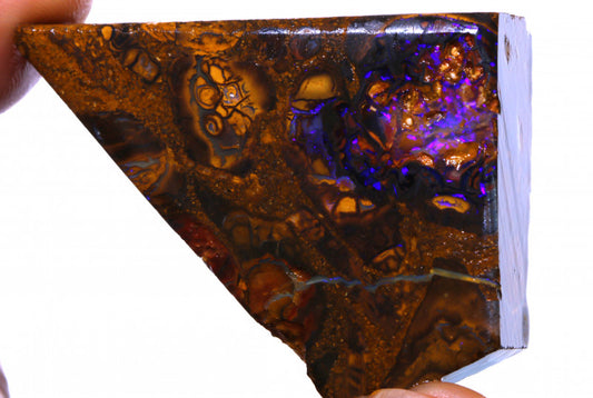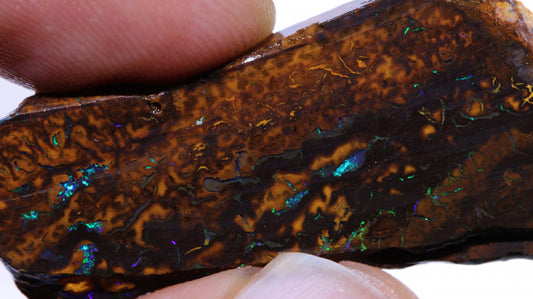 Australian Queensland Boulder Matrix opal 50cts rough / slice Koroit veins of Multifires 26x19x7mm BFA28