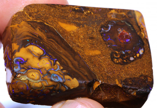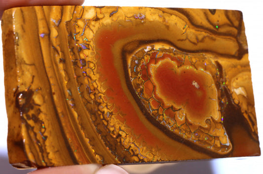 Australian Queensland Boulder Matrix opal 122cts rough / slice Stunning Yowah veins of Multifires 34x28x10mm BFA04